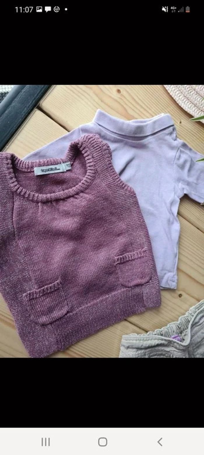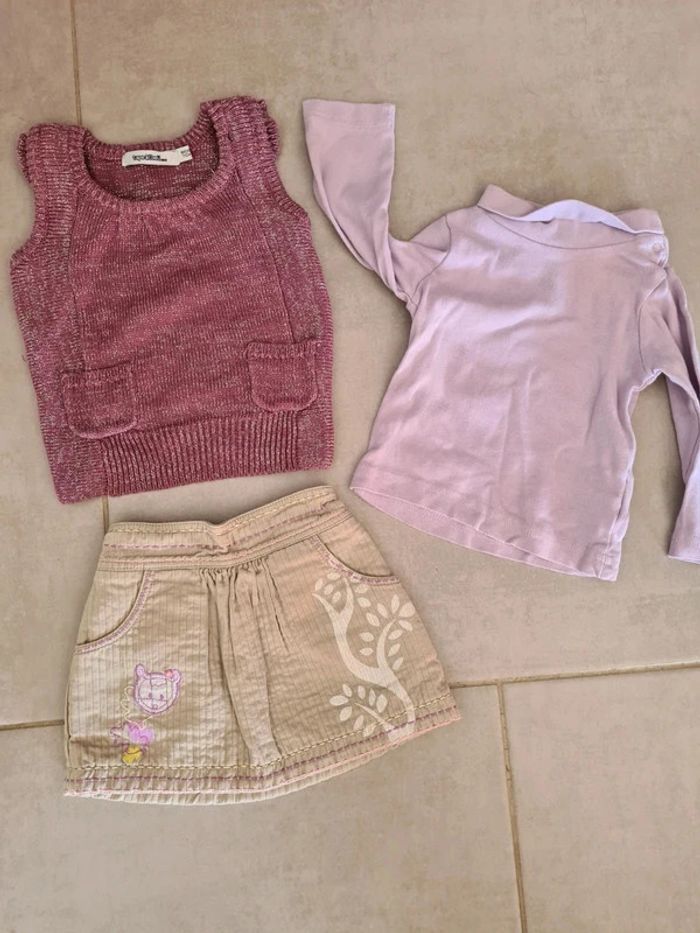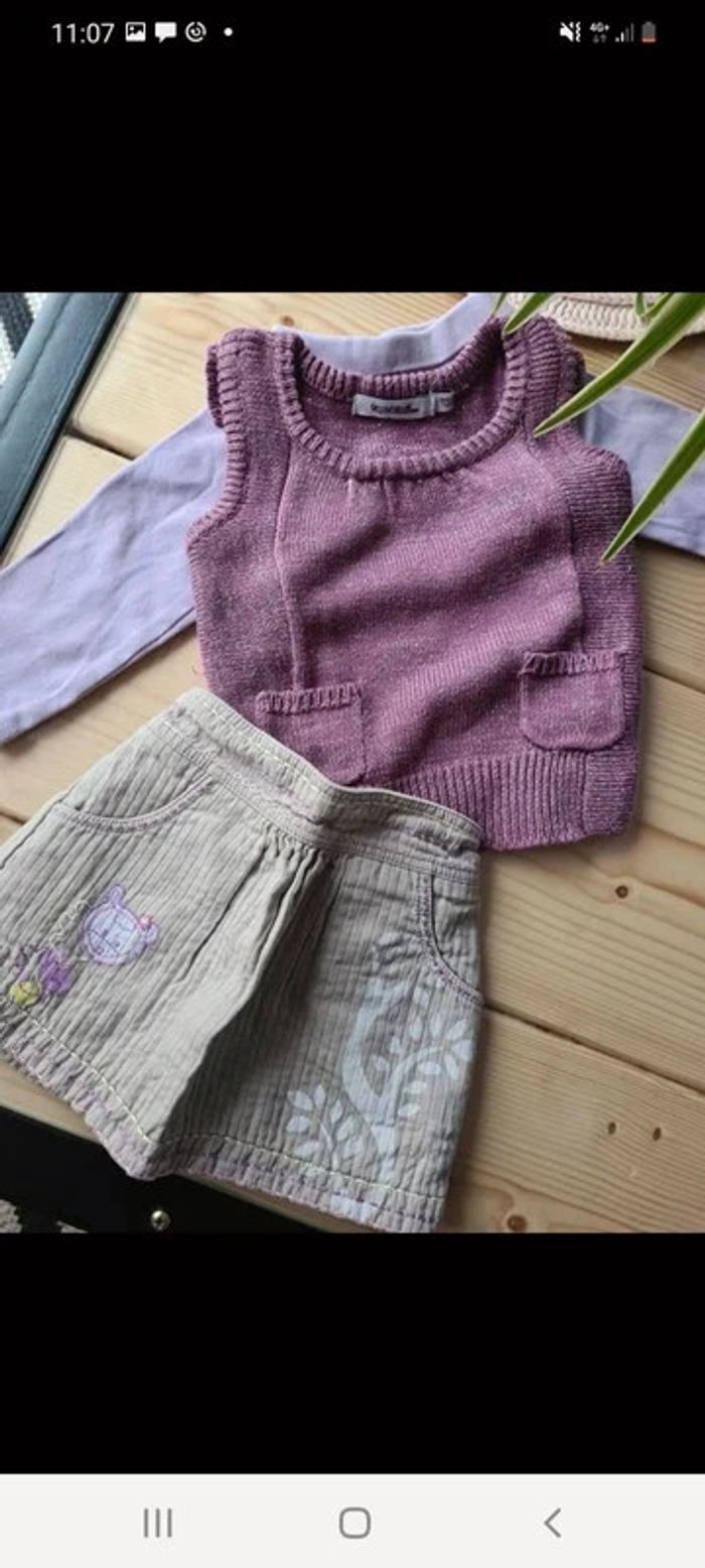 Ensemble 9 mois Pull pailleté manche courte tape à l'œil Jupe intérieur polaire orchestra Sous pull sans marque Taille 9 mois #lola9M