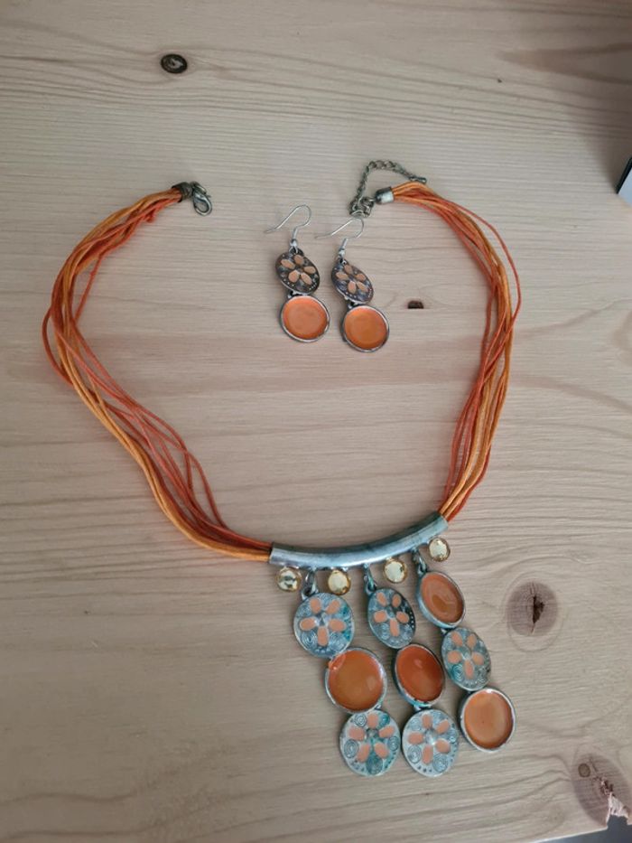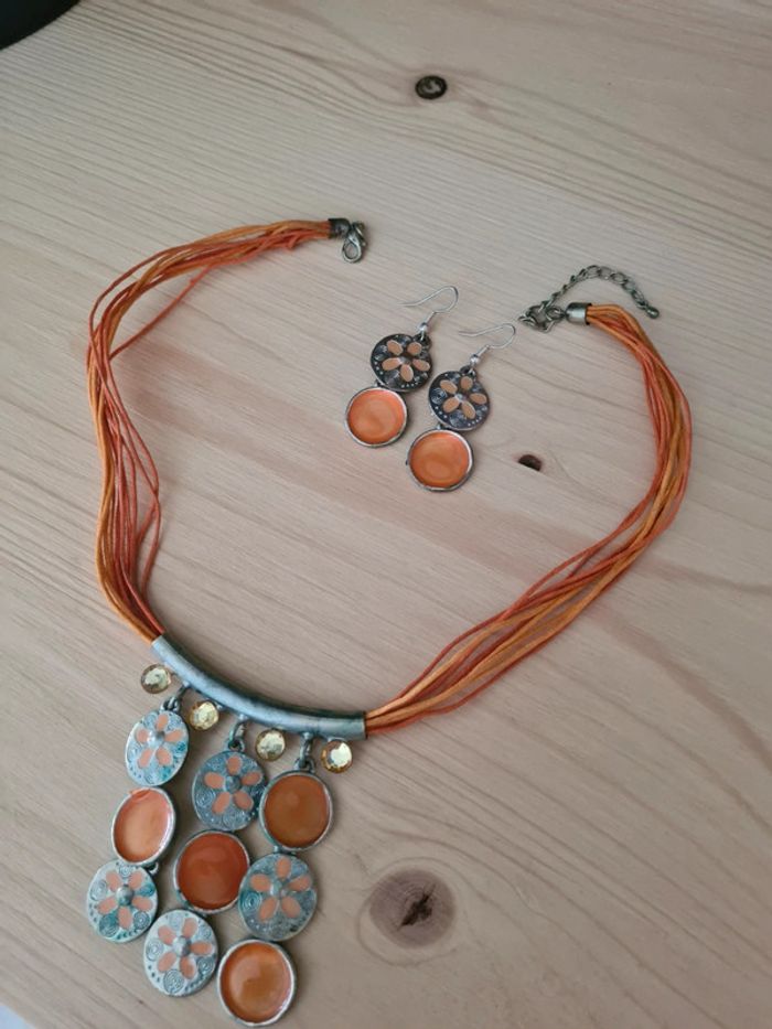 Parure collier + boucles d'oreilles orange et argenté #juliebijoux