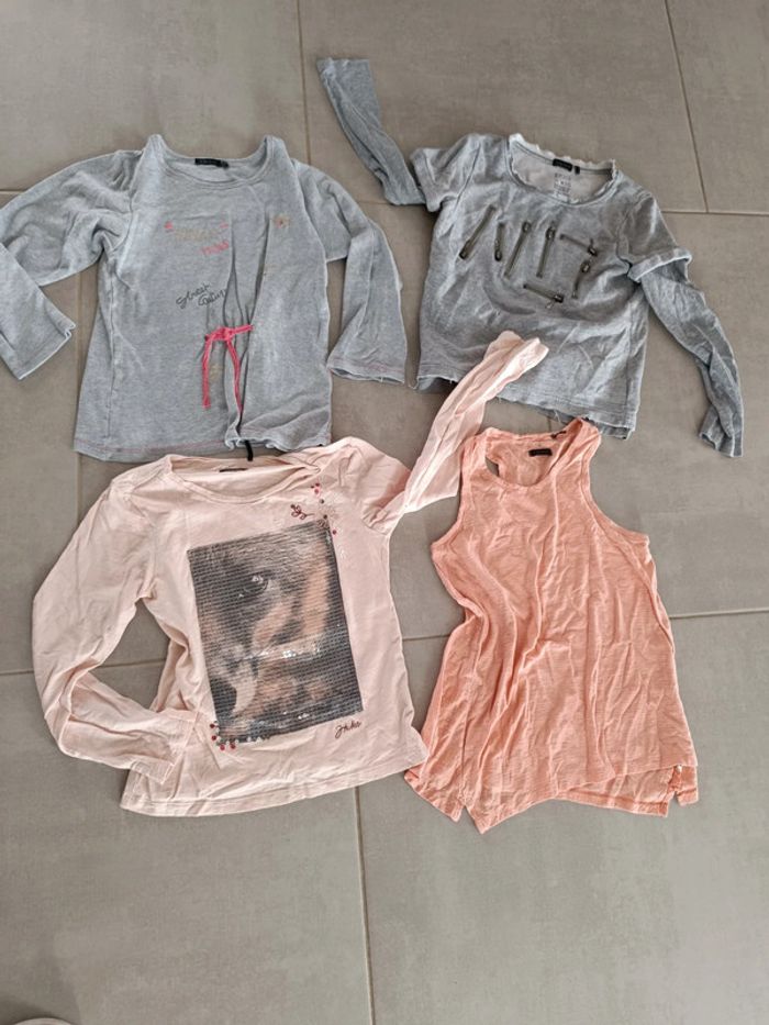 Lot t-shirt IKKS 1 débardeur long fluide 1 t-shirt ML avc strass sur l'avant 2 t-shirt épais style petit pull léger Taille 8 ans #lola8ans