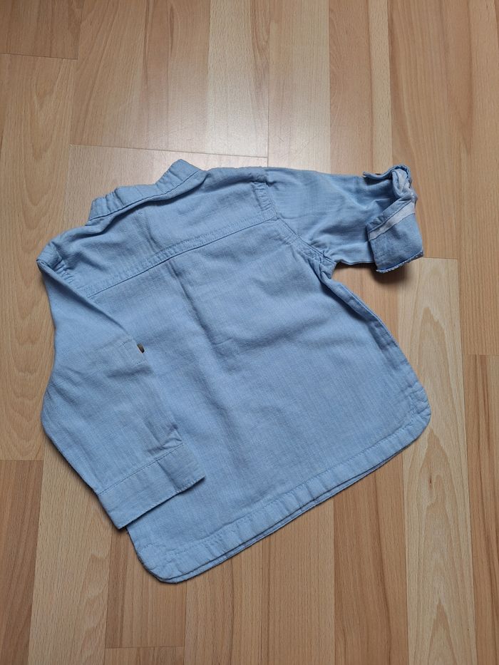 GARÇON 18 MOIS N°680 blouse bleu ciel Bouton col Possibilité manche retroussé 100% coton Taille 18 mois Kaibi 2,50€ #kelly_garçon18mois