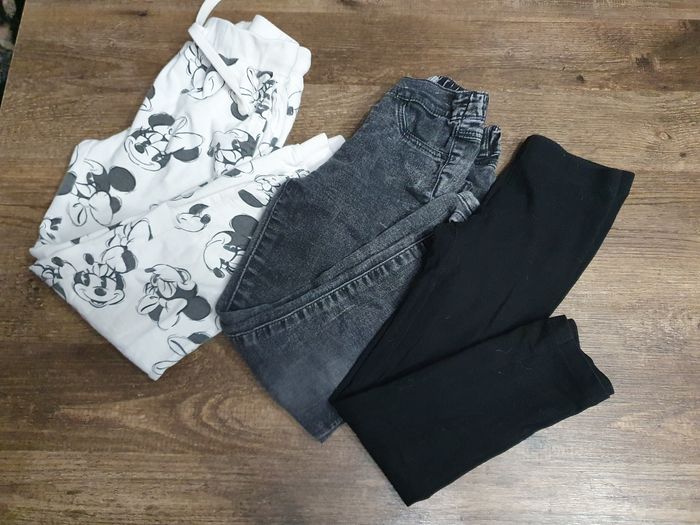1 survêtement Minnie noir et blanc 1 jegging effet Jean noir délavé 1 legging noir Très peu porté Taille 5 ans Le pull Minnie sera donné avec le lot car petite tâche dessus, ainsi que le pantacourt Hello Kitty.