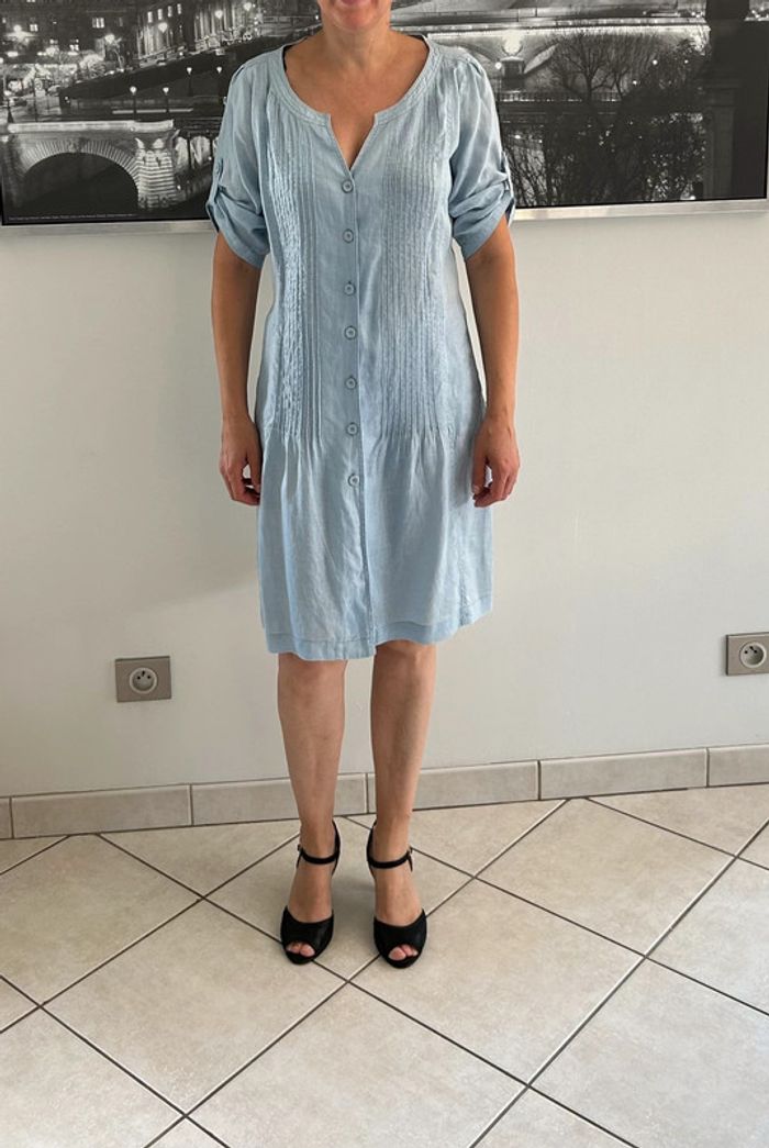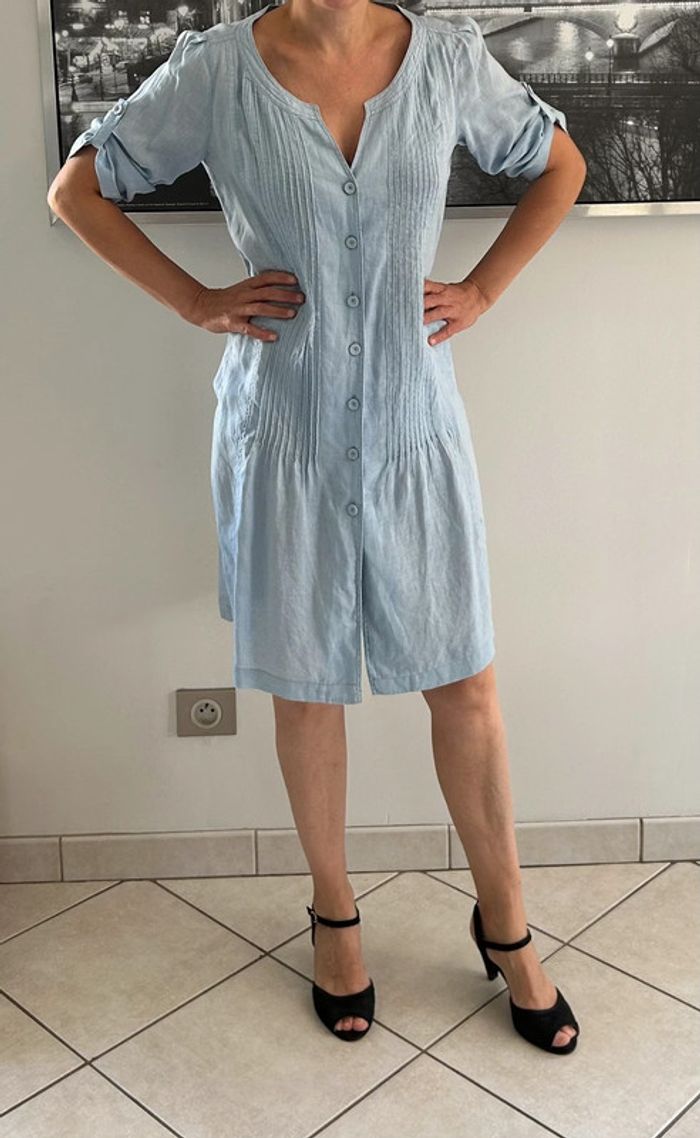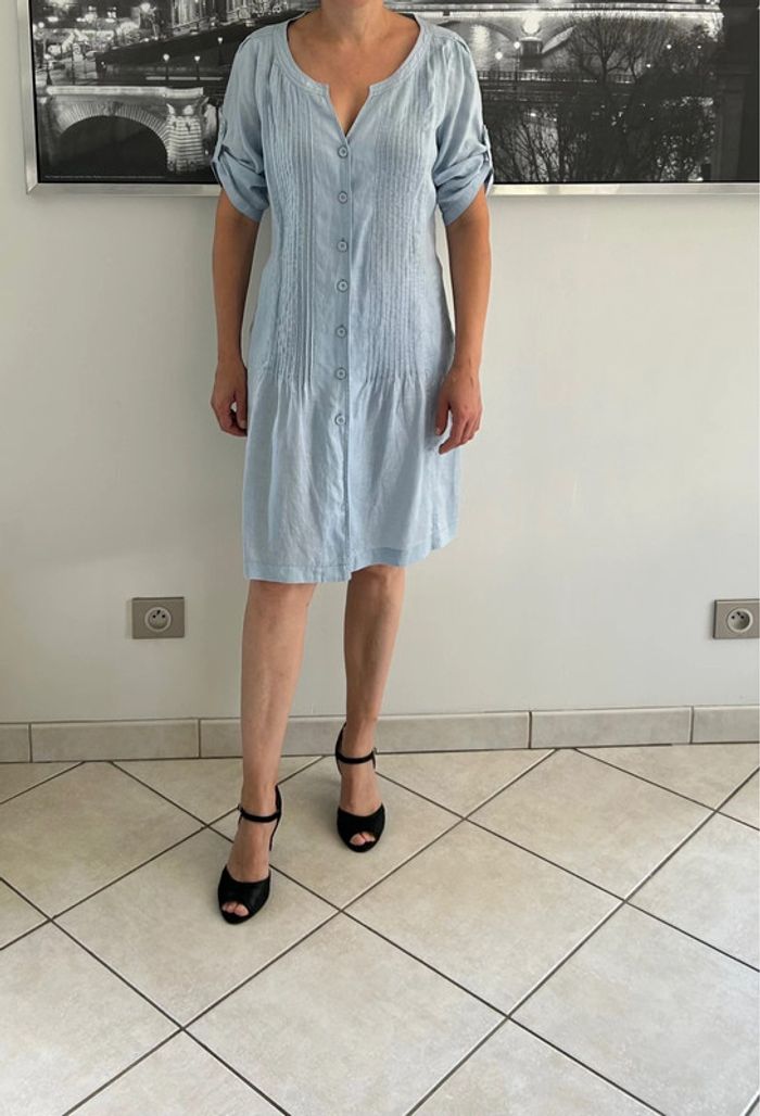 Robe vintage Gérard Darel taille 40 (le mannequin sur la photo fait du 38 et 1m65) en très bon état lin couleur bleue ciel 🌸 pour les articles vintage (ayant plus de 20 ans) cliquez ici #vintage_loena38💫 🌸 Pour les ventes 40/42/44 cliquez ici #grandetaille_loena38👚 #robe_loena38 👗