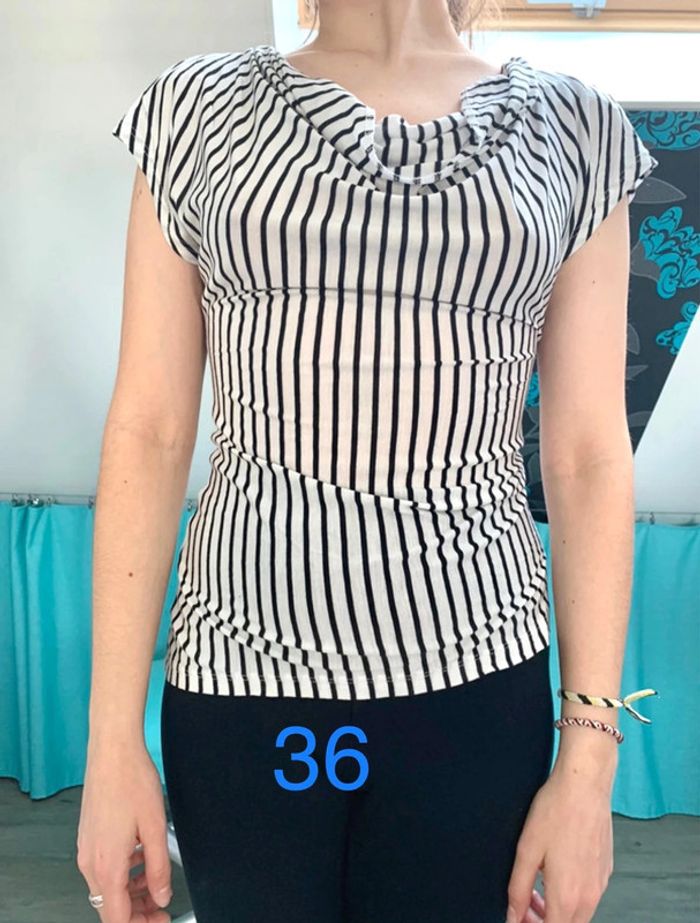 t-shirt en très bon etat peu portée marque H&M rayure taille 36 🌸 pour les vêtements femmes taille S cliquez ici #femme36_loena38 👚