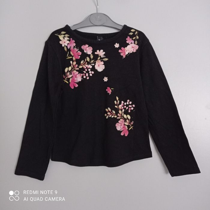 T-shirt noir fleurs roses 5ans