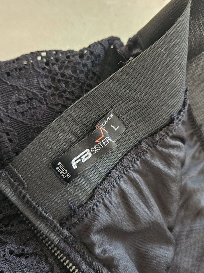 Jupe courte de la marque FB Sister en taille L (achetée chez New Yorker) Taille élastiquée avec grande fermeture éclair au dos Tissu façon dentelle/crochet/macramé Doublure dessous (non transparente) Coupe évasée patineuse Mesures en photo Jamais portée, parfait état #y2k #y2kstyle #y2kfashion #y2kaesthetic #y2kvintage