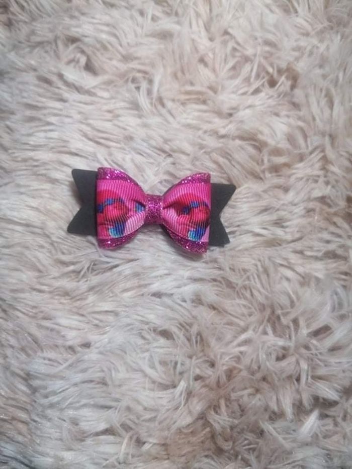 Pince à cheveux en tissu et mousse sur le thème les Trolls. La pince arrière fait 4cm D'autres couleurs peuvent être faites. 2 pour 5€ (panache possible)