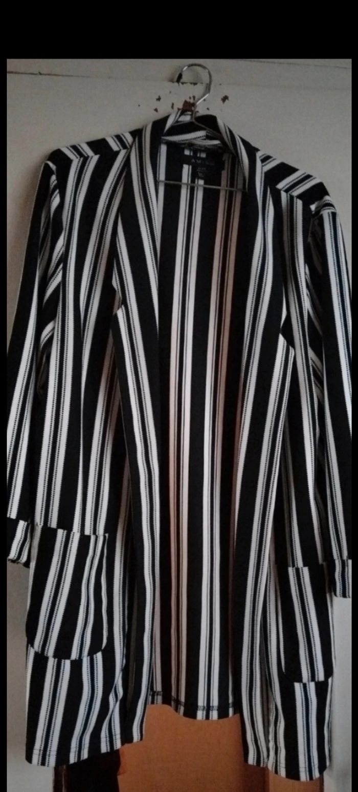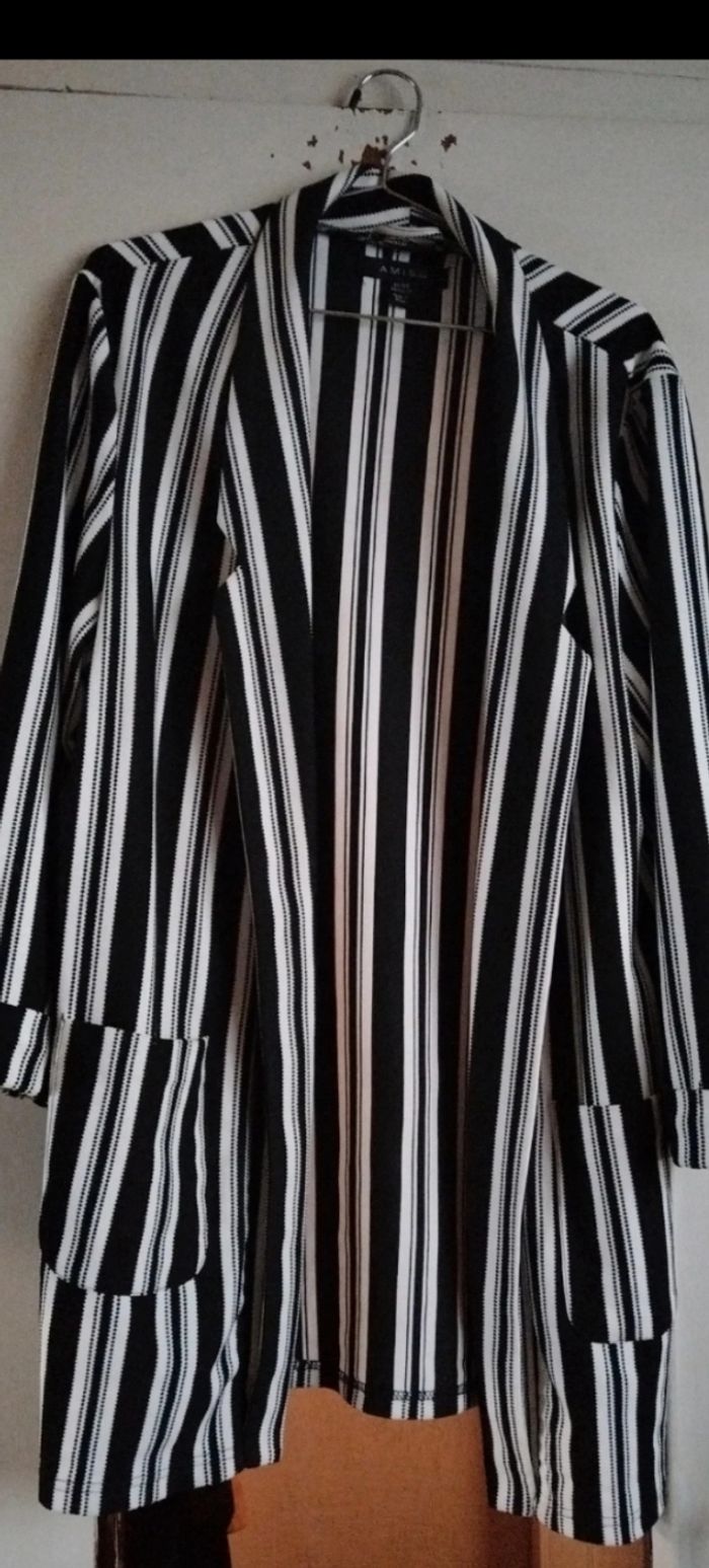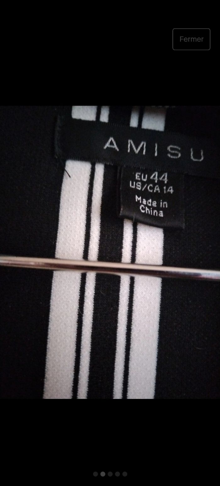 Jolie blazer/veste noire et blanche de marque Amisu. Taille 44 mais plutôt un 46. Comme neuf porté une fois car un peu grand pour moi.