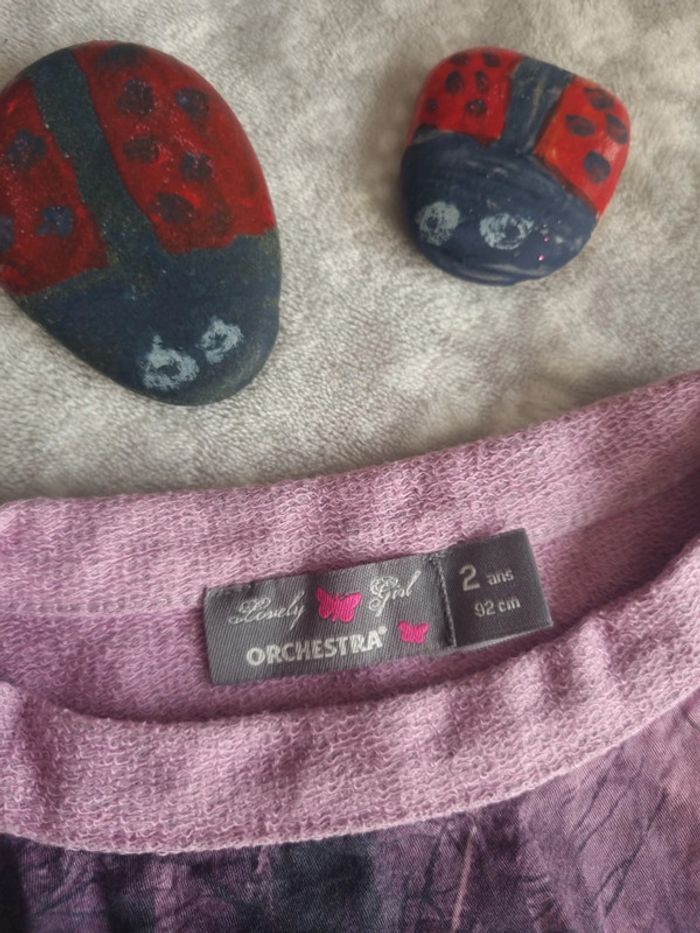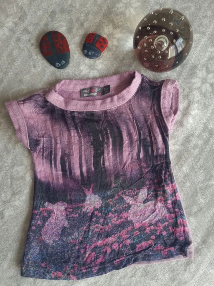T-shirt violet/rose manches courtes avec dessin lapins et fleurs. Orchestra 2ans #fillekay2ans