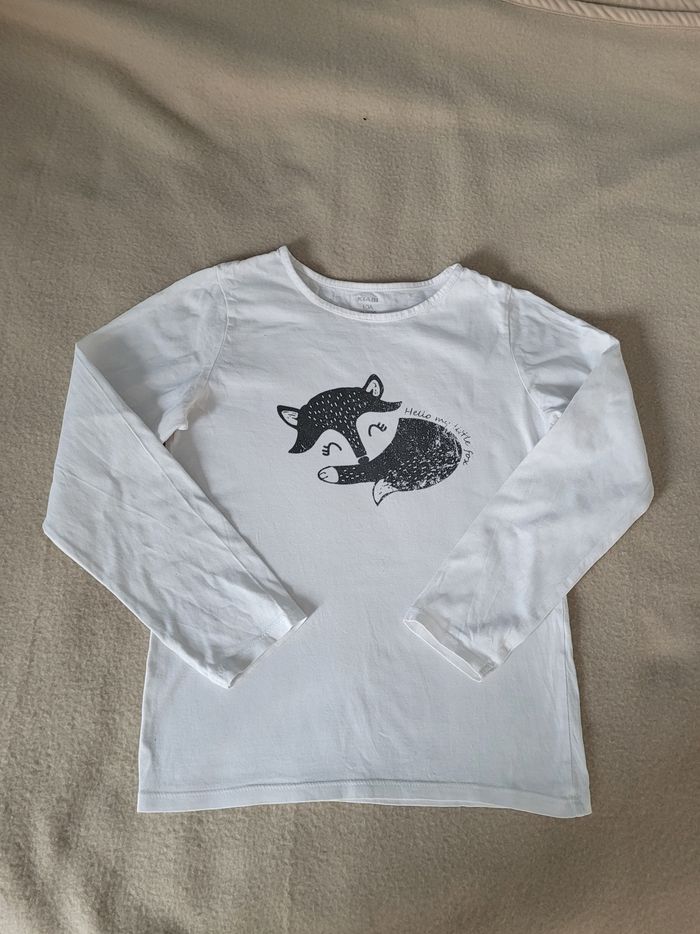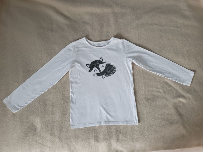 T-shirt kiabi manches longues 10 ans En bon état Blanc, motif petit renard