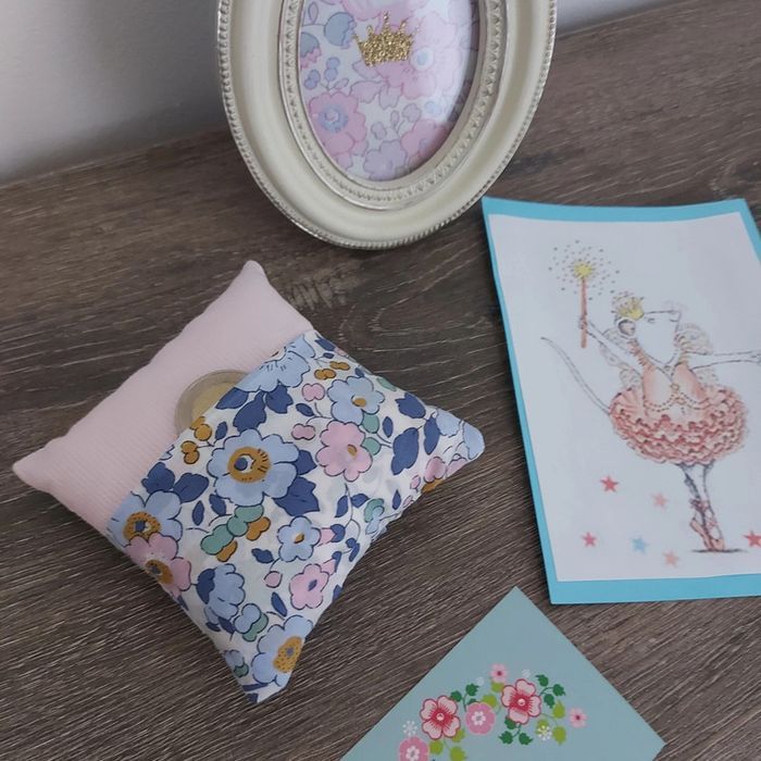 Petit coussin à glisser ou à déposer près de l oreiller pour que la petite souris récupère la dent de lait et dépose une pièce à la place. En Liberty Betsy Denim et piqué de coton rose Pas de rabais sur cet article, merci pour votre compréhension. Envoi en courrier suivi, si vous préférez Mondial relay, merci de me contacter avant l achat afin que je change le mode d envoi.