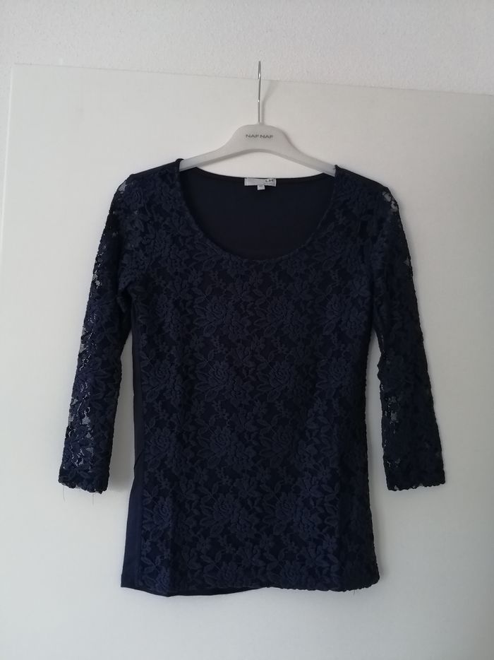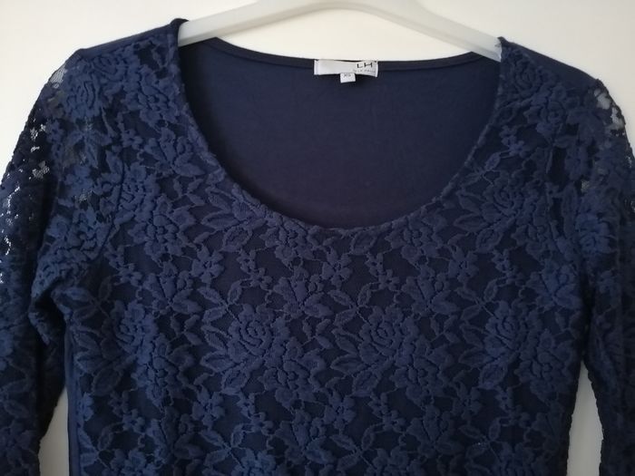 Tee shirt manches 3/4 bleu foncé avec dentelle sur le devant La Halle taille XS - photo numéro 1