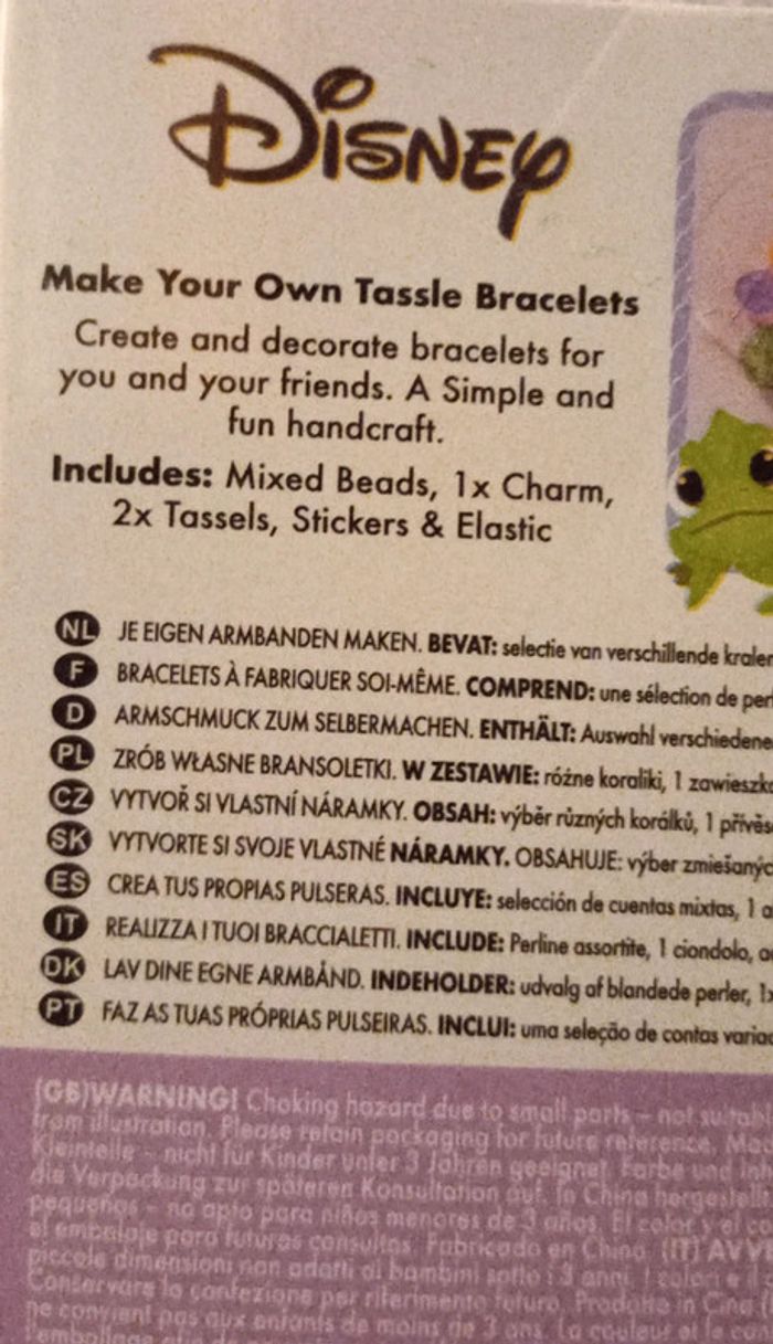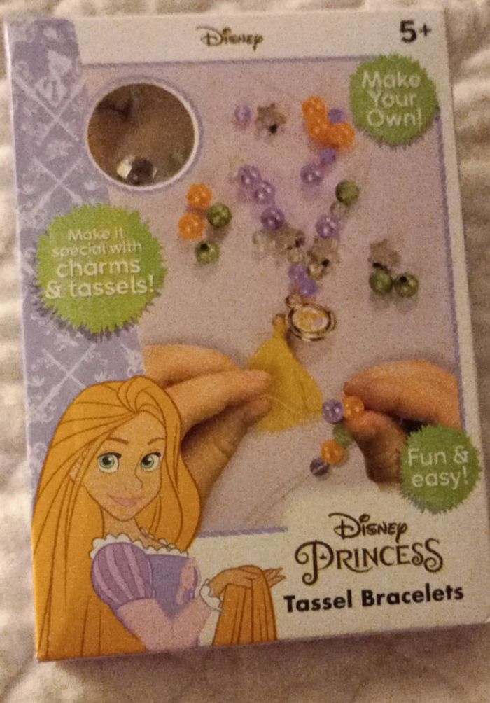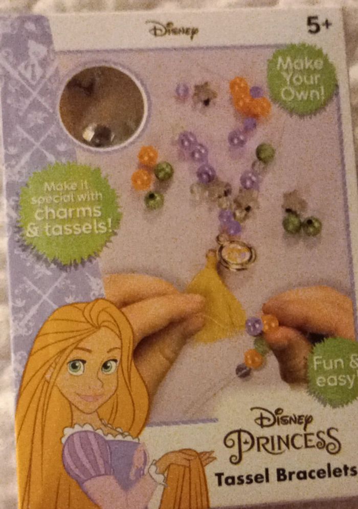 Neuf dans son emballage d'origine pas ouvert Bracelet Charm et++ pompons élastique, #disneyprincesse #princesseraiponcedisney À partir de 5 ans