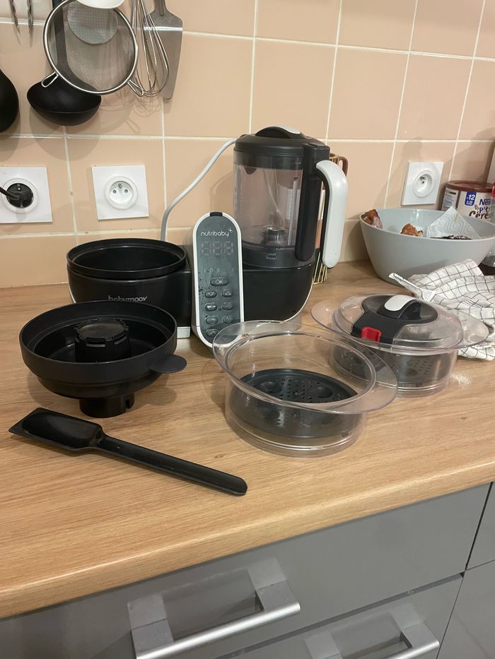 Je vend ce nutry baby acheter en janvier 2023 à 150€ + un lot de 17 petit pot ( 6 babymoov + 11 action ) Malheureusement je l’ai fait tomber et le compartiment pour le mixage est cassé ( voir photos ) heureusement ça n’empêche en rien à son utilisation et il n’a pas de fuite.