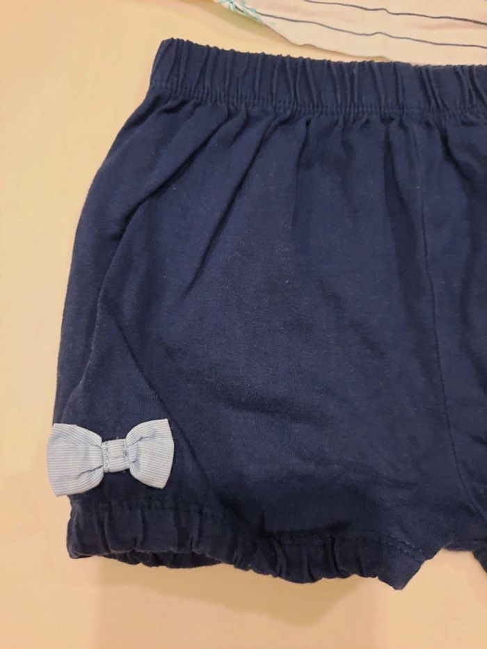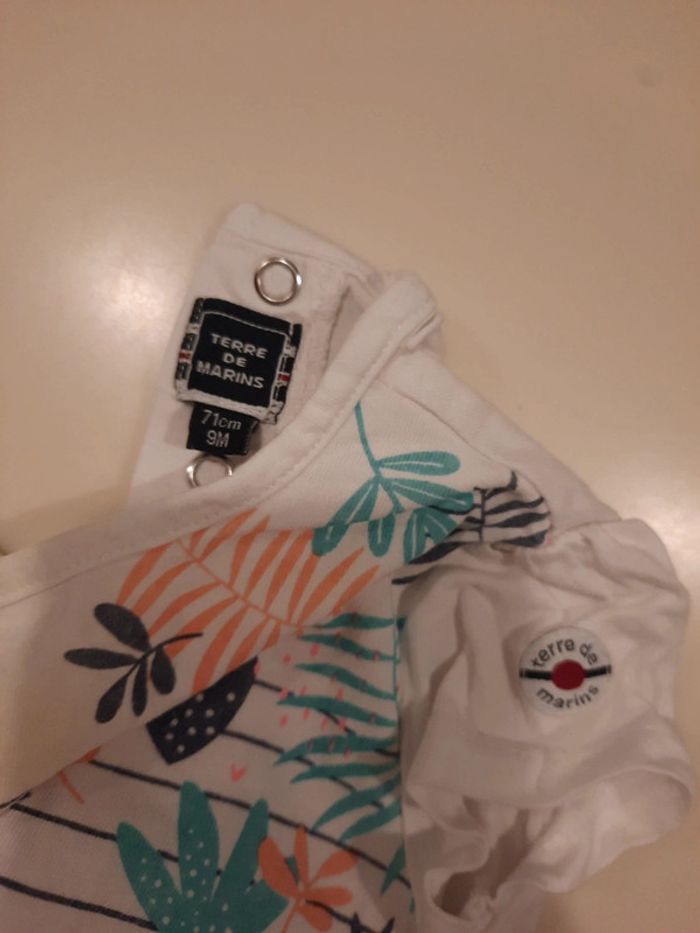 Ensemble t-shirt/short bébé fille de la marque Terre de marin en taille 9 mois. Très légère traces sur le haut du t-shirt. Remise en main propre possible Lot-et-Garonne/Tarn-et-Garonne.