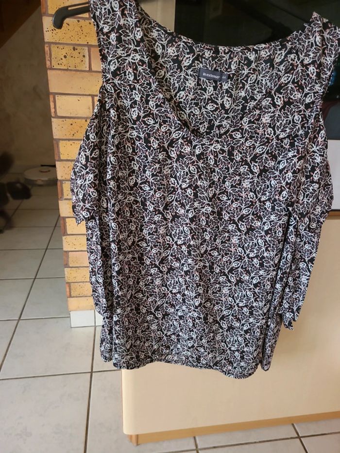 Débardeur avec manches dénudées Taille 44 Noir, blanc et rose Très bon état