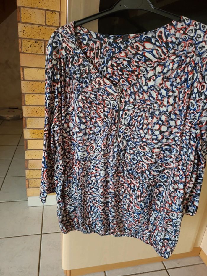 Haut zippé manches 3/4 Bas élastiqué Taille 4 Bleu, rouge et bleu Correspond à un 44/46 Comme neuf