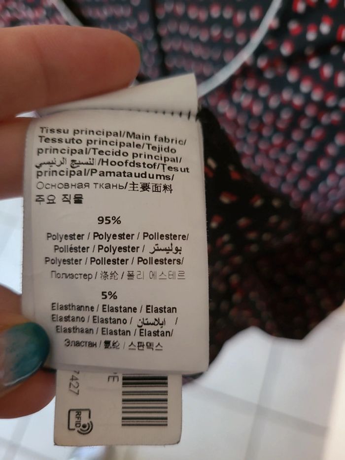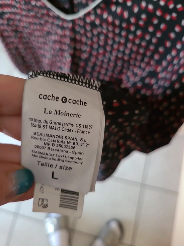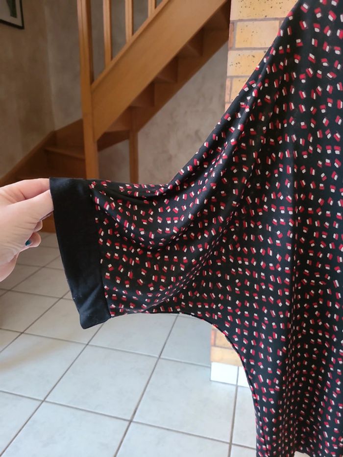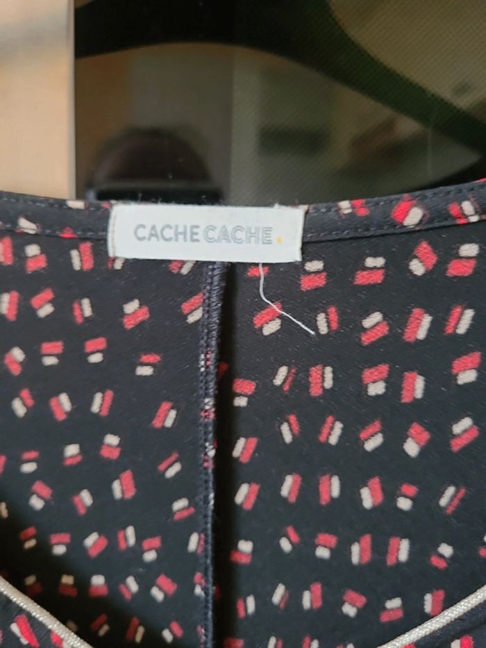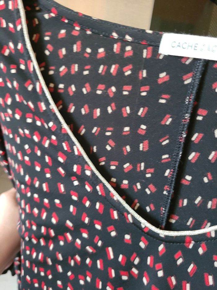 Haut femme Taille L Taille 42/44 Col V liseré doré Noir, rouge et blanc Comme neuf