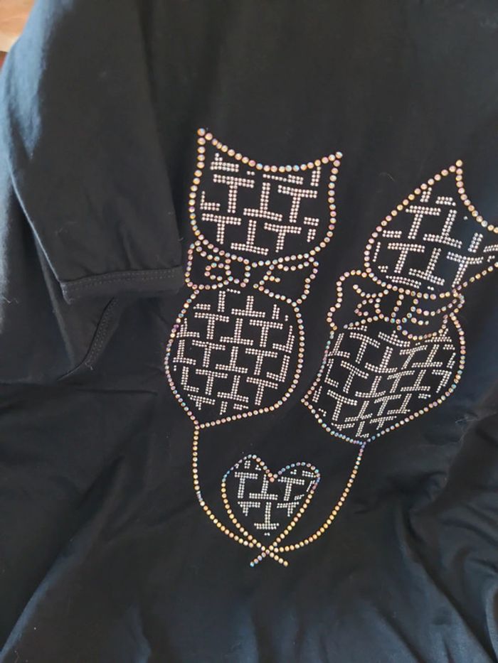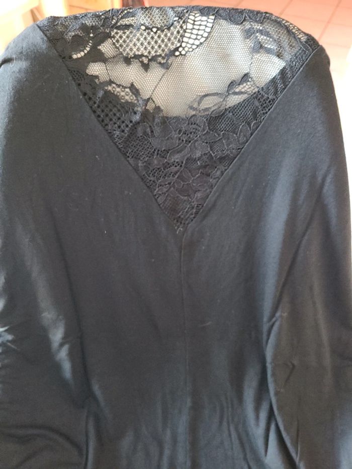 Noté taille S/M mais correspond à un 40/44 Noir avec strass Dentelle sur le haut du dos Neuf Jamais porté Juste lavé
