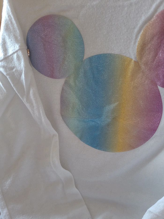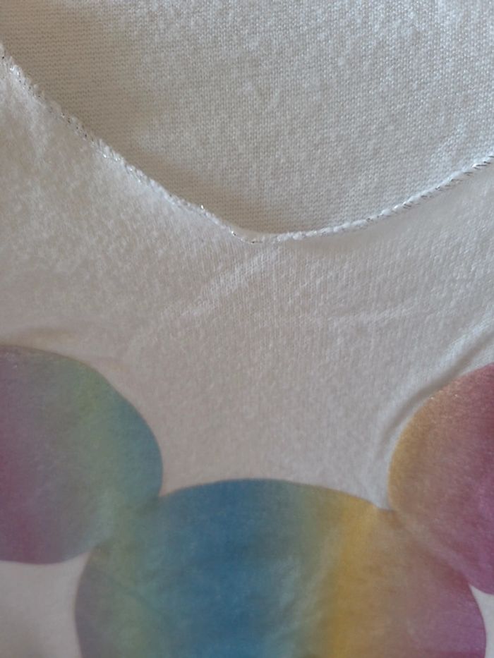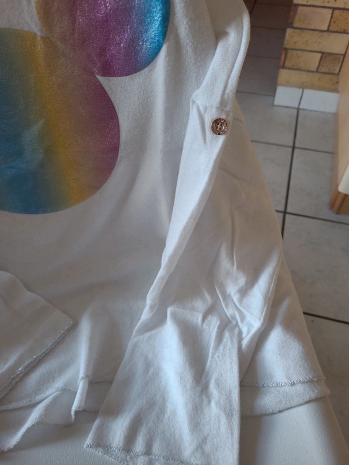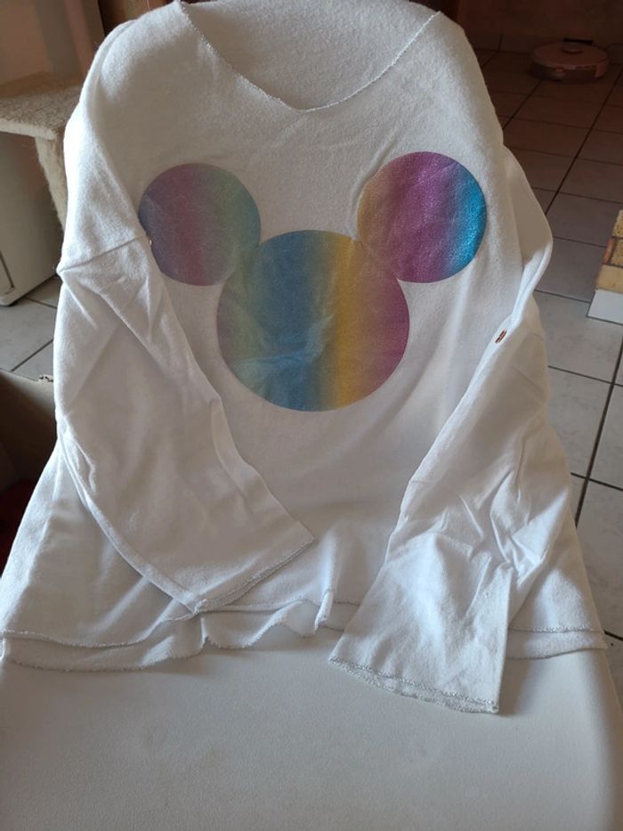 Blanc Tête de Mickey multicolore Manches retroussables Convient à une taille 44/46 Porté mais très bon état