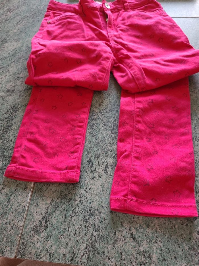 Taille 7 ans Slim Rose fuschia avec étoiles Bouton à pression Très bon état 98% coton 2% élasthanne