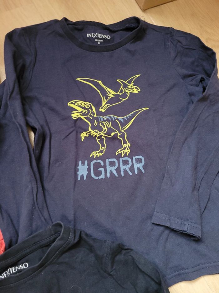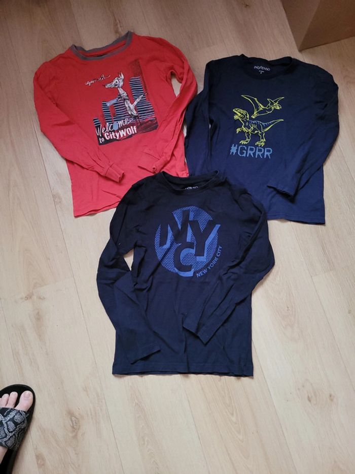 Taille 8 ans Manches longues 1 noir et bleu, 1 rouge et gris et 1 bleu marine et jaune Bon état