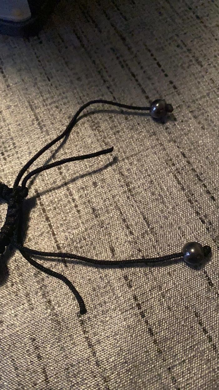 bracelet ajustable se resserre avec les fils qui ont des boules au bout, les deux autres fils ne servent pas