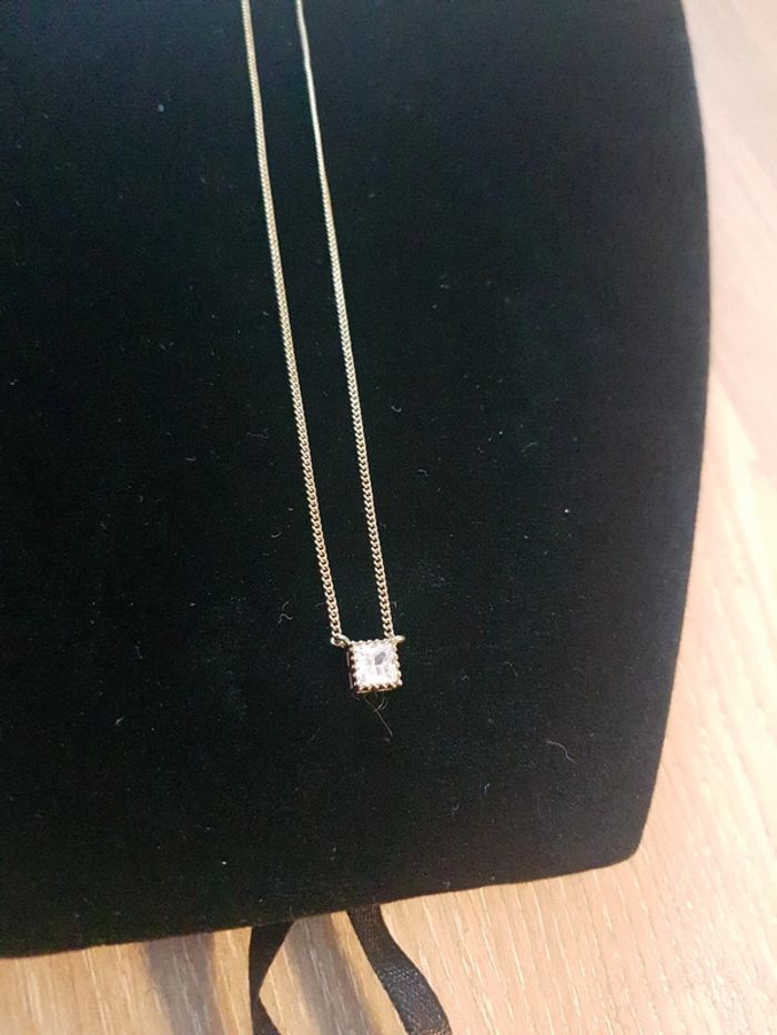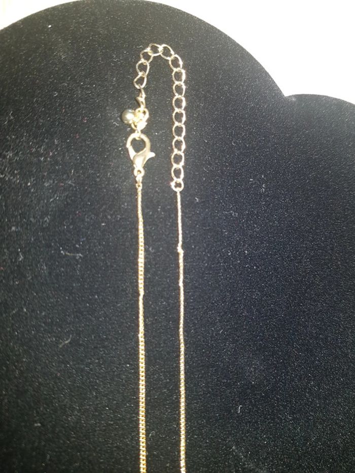 Collier fantaisie doré pierre centrale carrée brillante 48 cm Jamais porté