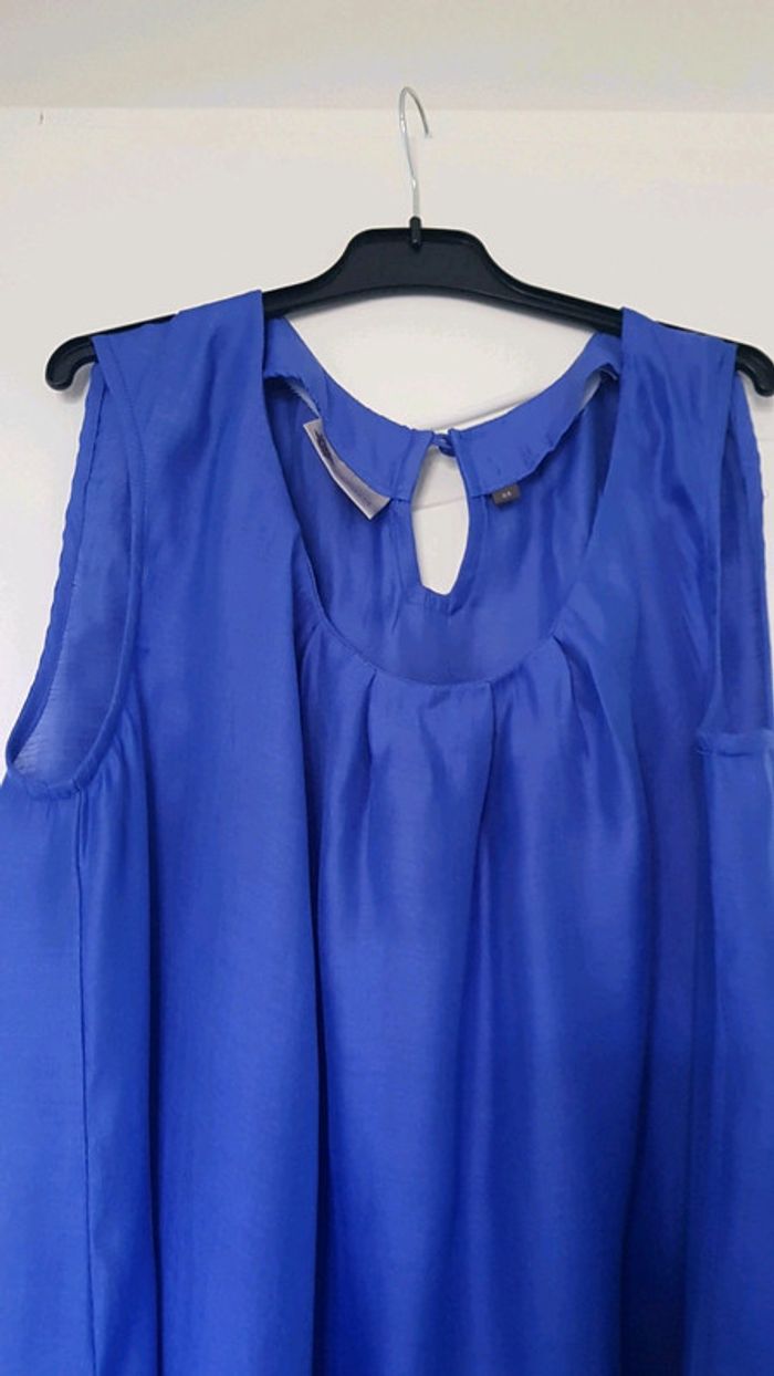 Taille 44 Bleu électrique satiné 65% viscose et 35% polyester À mettre avec ou sans ceinture Très bon état