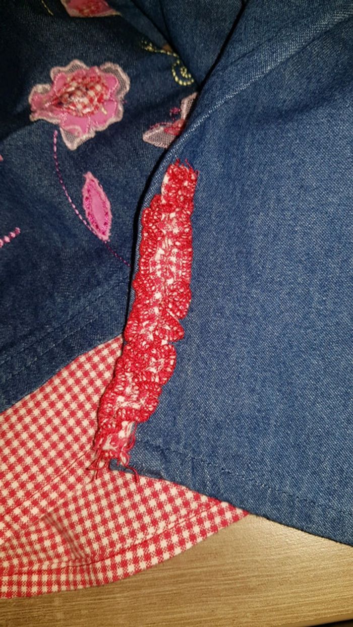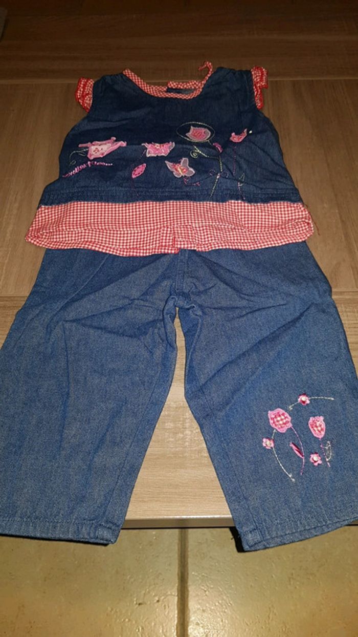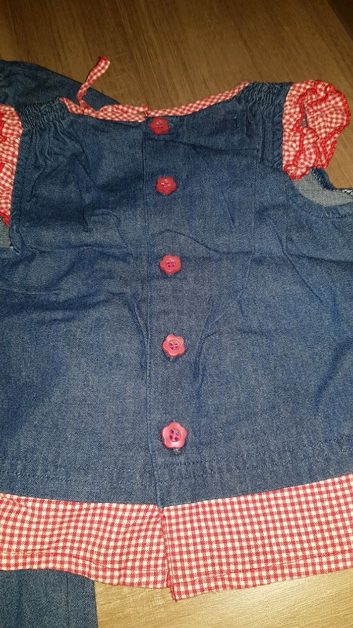Taille 23 mois En jean et tissu à carreaux rouge et blanc Pantalon taille élastique Fermeture dos du haut par boutons