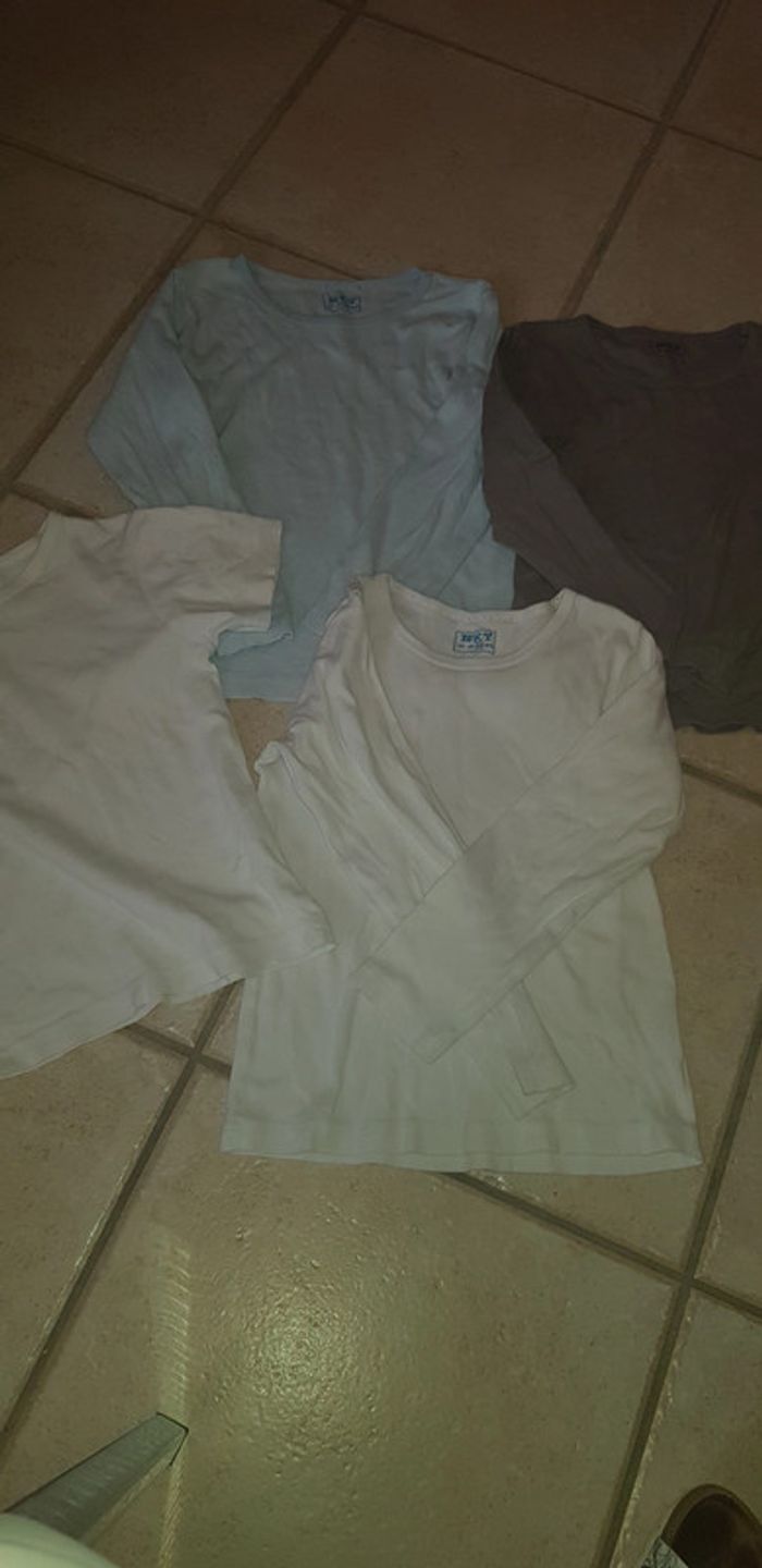 Taille 6/8 ans 1 manches longues rayé blanc et bleu 1 manches longues blanc 1 manches longues gris taupe 1 manches courtes blanc