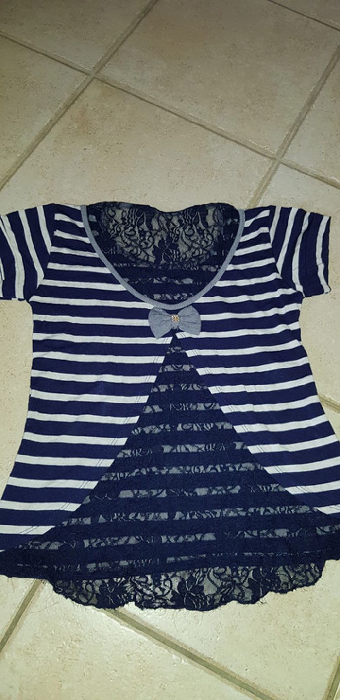 Tee-shirt manches courtes blanc et bleu marine fille - photo numéro 1