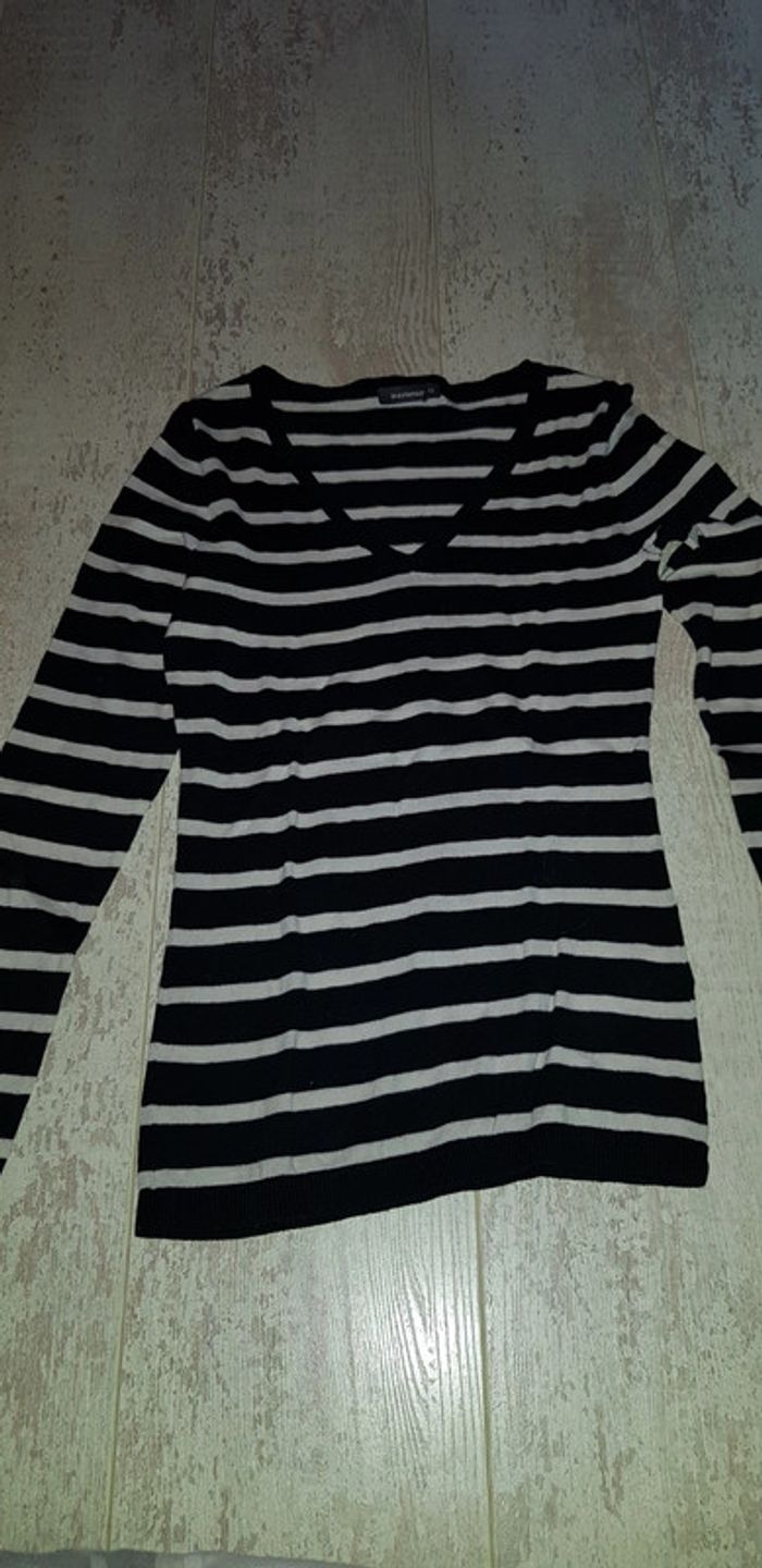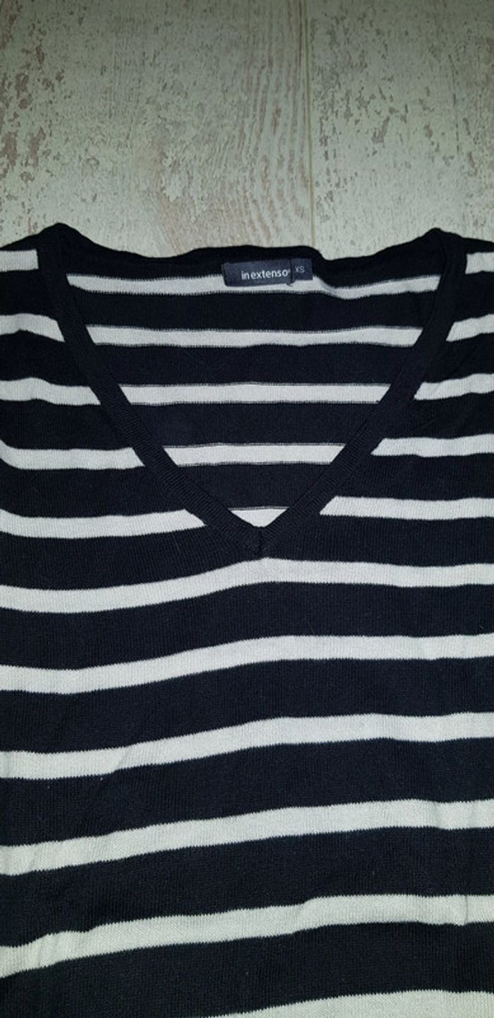 Pull fin col V rayé - photo numéro 1