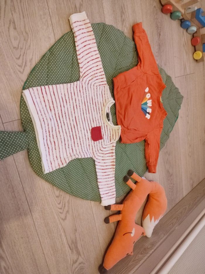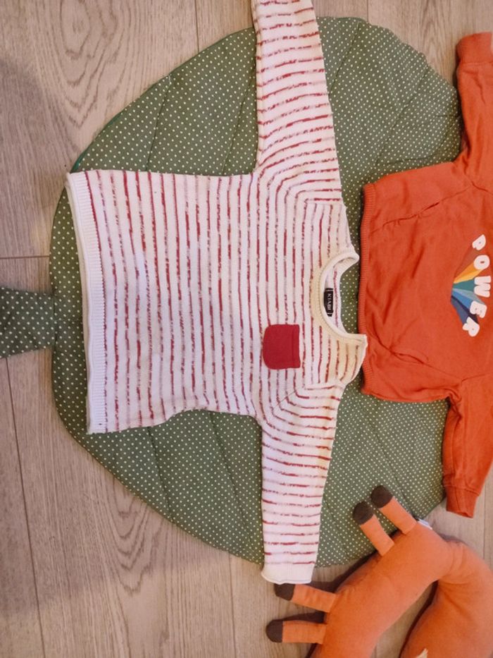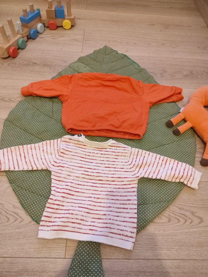 Le premier en bon état marque tape a l'oeil Une tâche au niveau du dos et le motif craquelle un peu Le second est un Kiabi en excellent état, très souple et doux Rouge et blanc