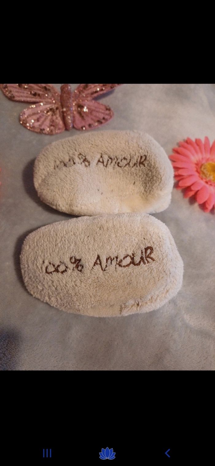 Petits chaussons souples avec inscription sur le dessus et le dessous.
