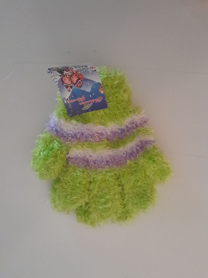 Gants tout doux 2-3ans vert violet - photo numéro 1