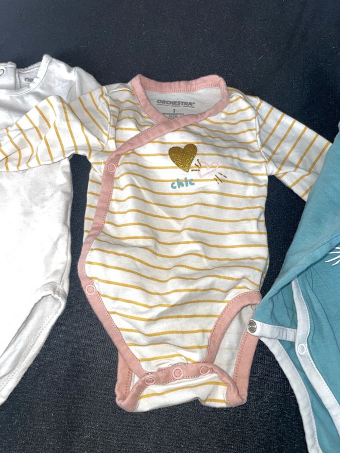 Lot bodies taille 1 mois de marque orchestra en excellent état. 2 parmi eux s’ouvre devant 🌸 Tout les prix du dressing sont négociable 🌸 #pauliiineee1525taille1moisFille