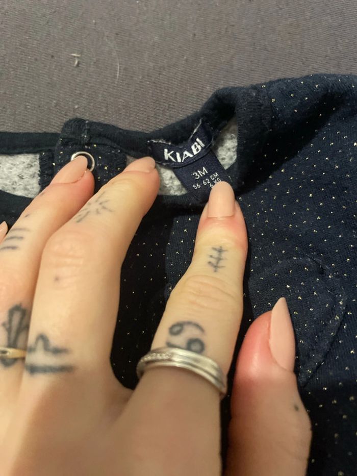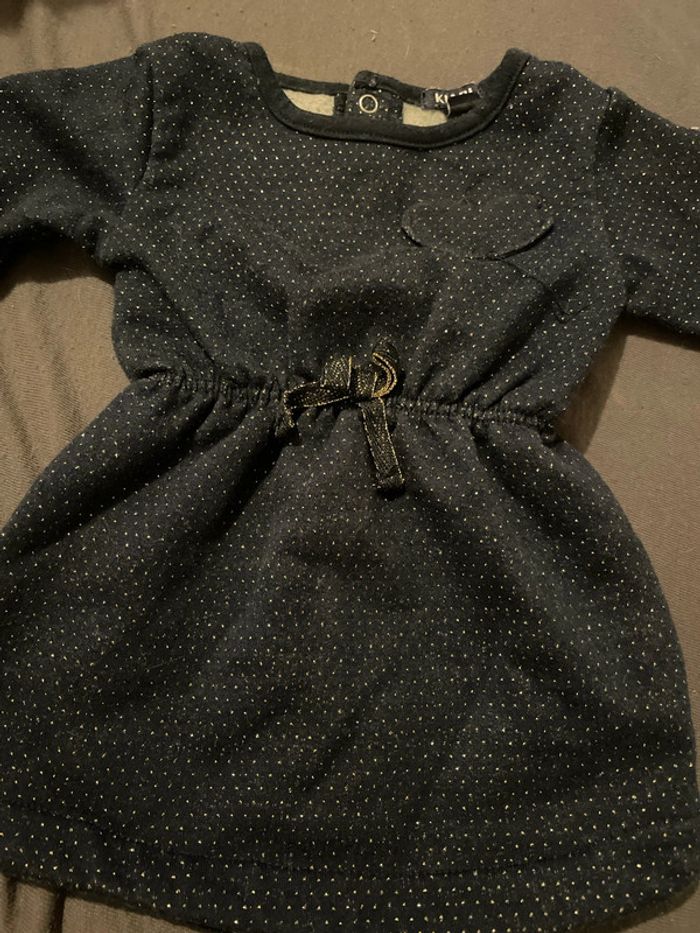 Robe Kiabi, taille trois mois bleu marine avec des pointes d’or, en excellent état et élastique autour de la taille qui se sert et dessert 👗 #pauliiineee1525taille3moisfille