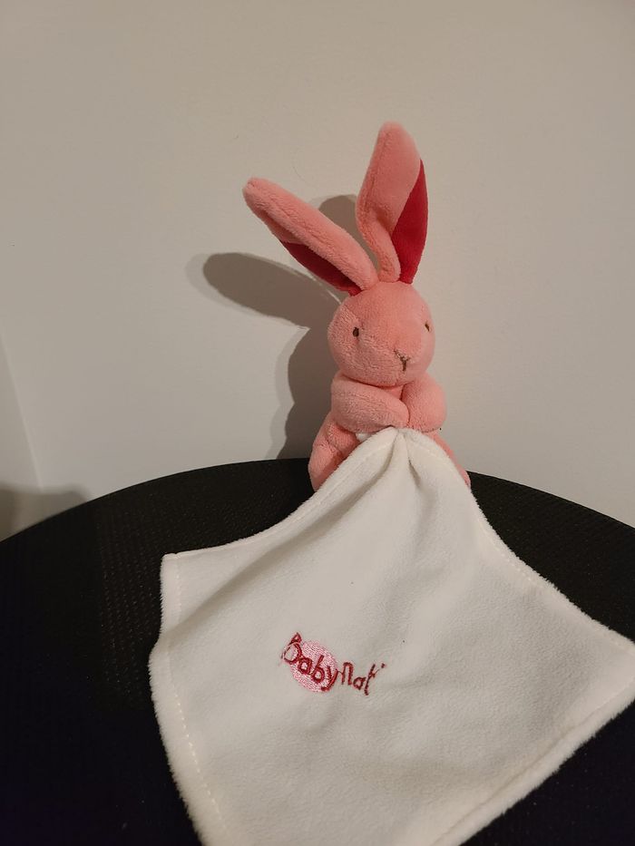 doudou lapin rose mouchoir blanc babynat' baby nat' 113