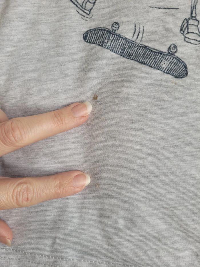 Lot de 4 t-shirts, taille 4 ans, en bon état. Ils ont tous des petites tâches, voir photos. #59160garcon4ans