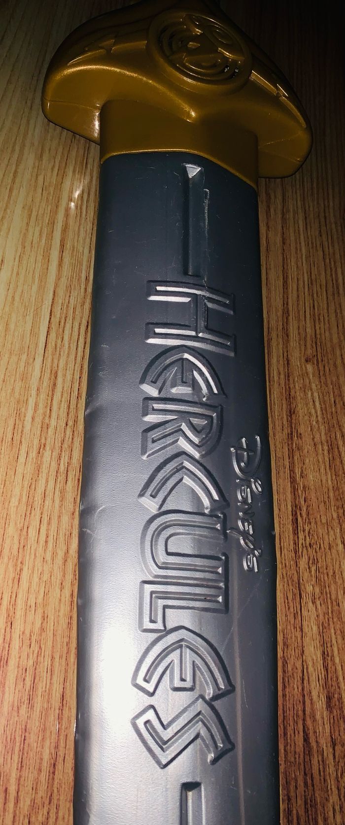 Épée Hercule vintage 1997 Disney Mattel, en état de marche fait 2 bruits différents. 1 de ding comme quand on tape sur métal, et un woufff bruit quand on fends le vent.