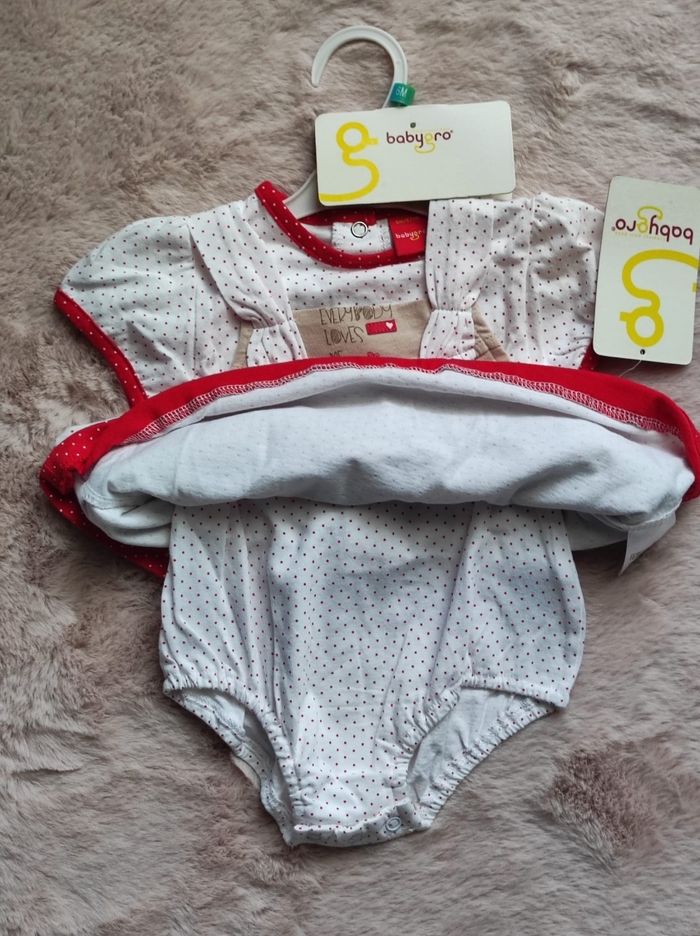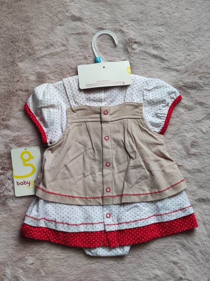 Robe 2en1 de chez babygro en 6 mois, un dessous en façon body a manche courte et dessus robe a bretelles. Neuf