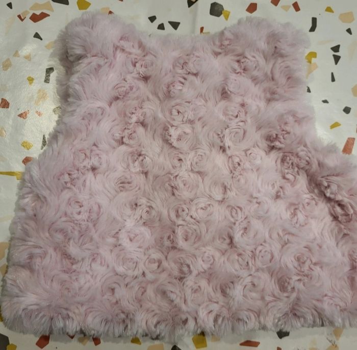 Tout doux et chaud ce gilet rose sans manches Des roses toutes duveteuses compose ce gilet fermeture devant Taille 6 mois Marque tissaia Très bon état