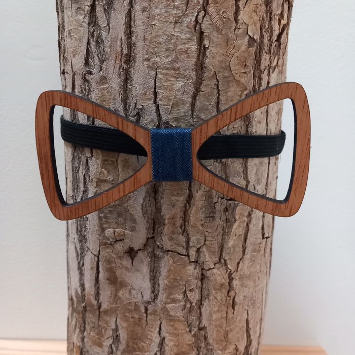 Noeud de papillon en bois 11cm épaisseur 5mm Avec tissu imitation jeans et cordon élastique réglable Création artisanale française
