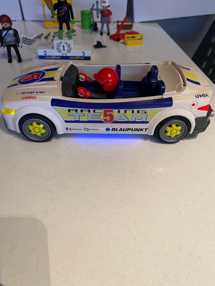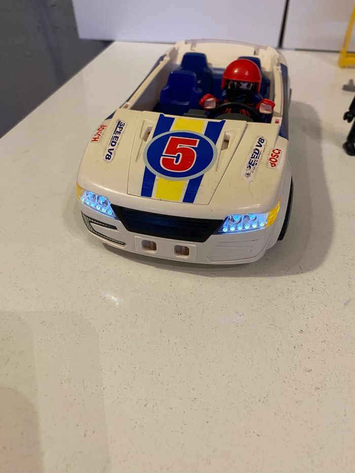 Voiture avec lumière et divers accessoires et personnages playmobil (voir photos )