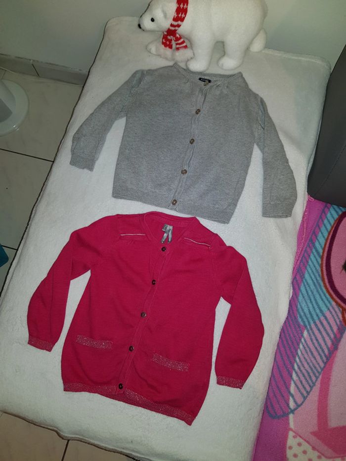 Le gris marque kiabi Le rose rouge marque orchestra Tres bon etat 2 ans
