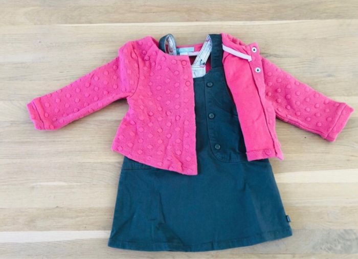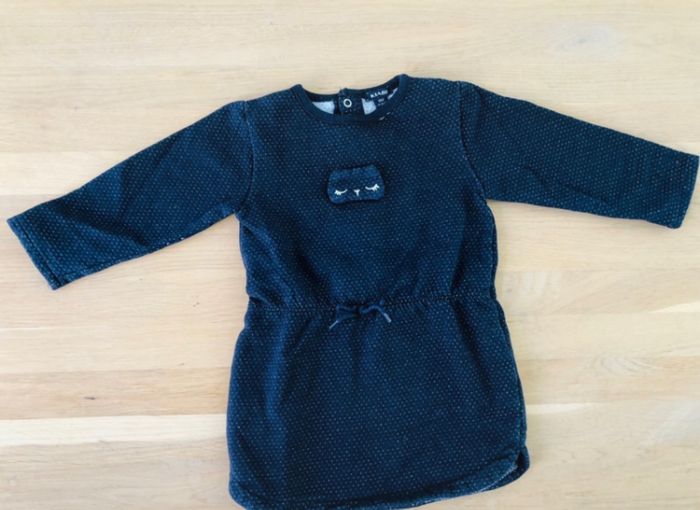 Taille 12 mois Robe en jean Pantalon / leegins Ensemble Robe pull Pyjama Sous pull Marque obaibi / Kiabi/ creeks/ gemo / orchestra Le tout en très bon état Peut être vendu séparément