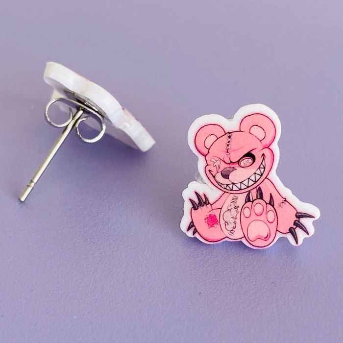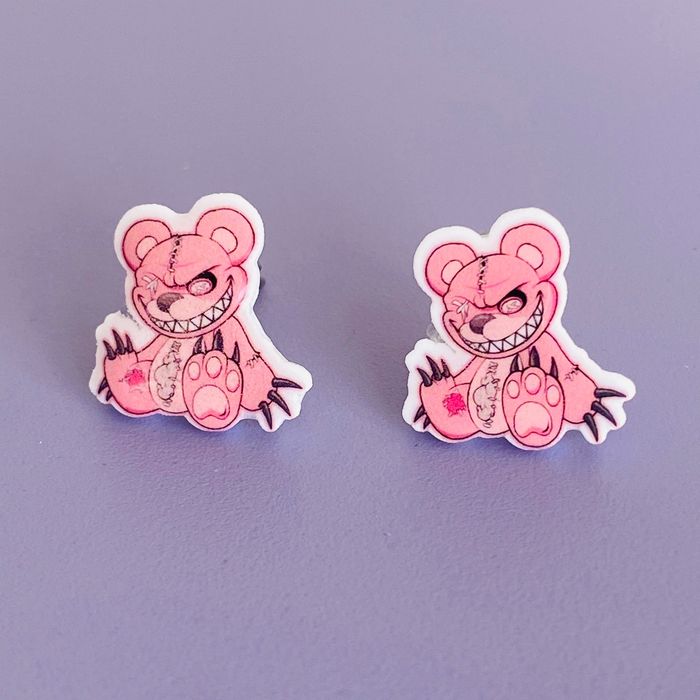 Boucles d’oreilles Fait main Résine Ours Rose - photo numéro 1