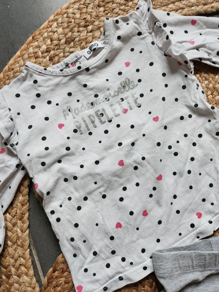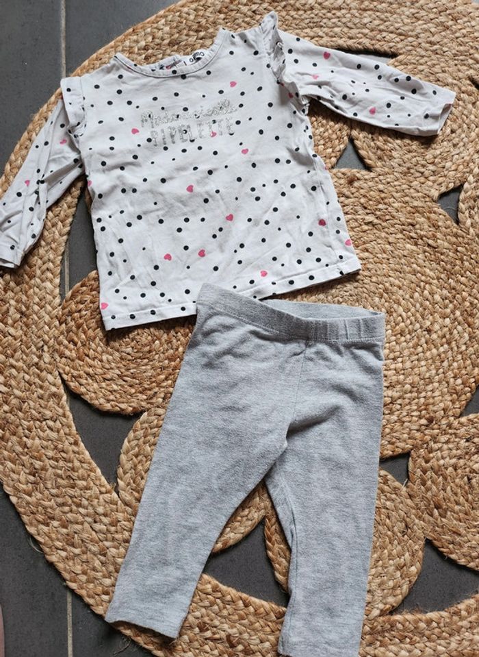 Joli petit ensemble 12 mois T-shirt ML avec motifs Gemo Legging gris Bon état 1€50 #leggingfille #tshirtfille #legging12moisfille #tshirt12mois
