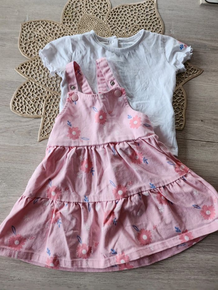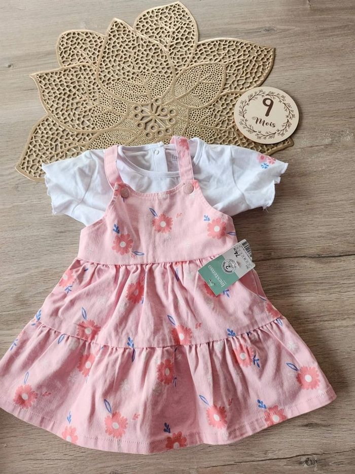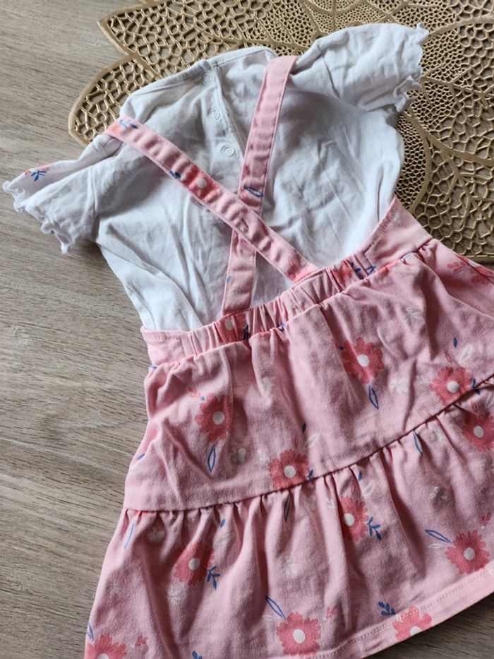Très belle robe salopette rose et son t-shirt blanc Très bon état 9mois In extenso 3€ #salopettebebe #robesalopettefille #robesalopette9mois