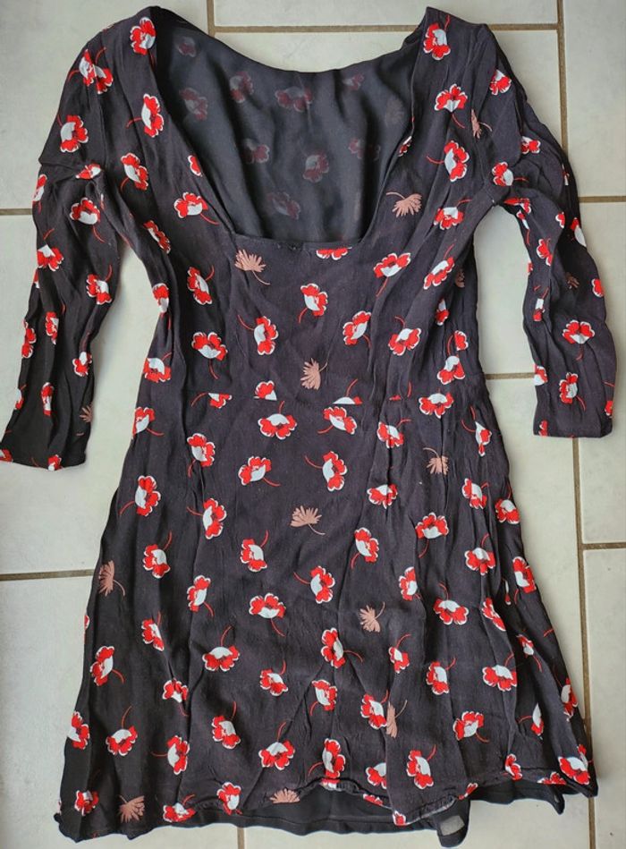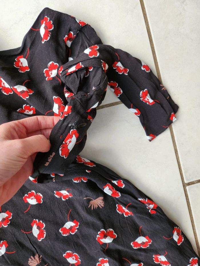 Belle robe noire à fleurs rouges Mango Taille XS Fermeture sur le côté Bon Etat (légère usure manche) #robemango34 #robemango #robefemme34